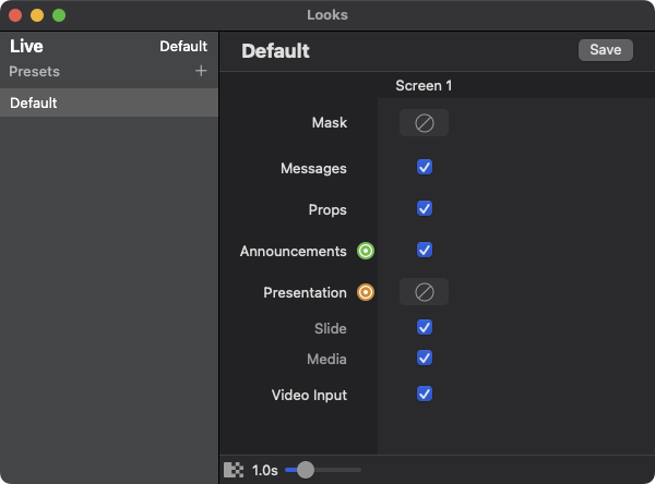 ProPresenter’s “Looks” feature enables users to define different templates and views for various screens. This is particularly useful when different segments of an audience require distinct visuals. For example, the main audience might see the primary presentation while a different template displays backstage for performers or speakers, providing them with additional information such as notes or timers. This ensures that each screen can be customized to meet specific needs without interfering with the overall presentation  .