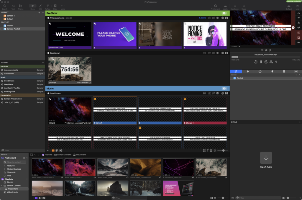 ProPresenter offers robust automation features that streamline the management of slides and media during live presentations. One of the key automation tools is its integration with MultiTracks.com, allowing for seamless synchronization of lyrics with music tracks. When importing songs from MultiTracks.com, ProPresenter automatically configures the lyrics to match the structure of the music, including the arrangement of verses, choruses, and bridges. This ensures that the correct lyrics are displayed at the right time, minimizing the risk of human error during live performances.