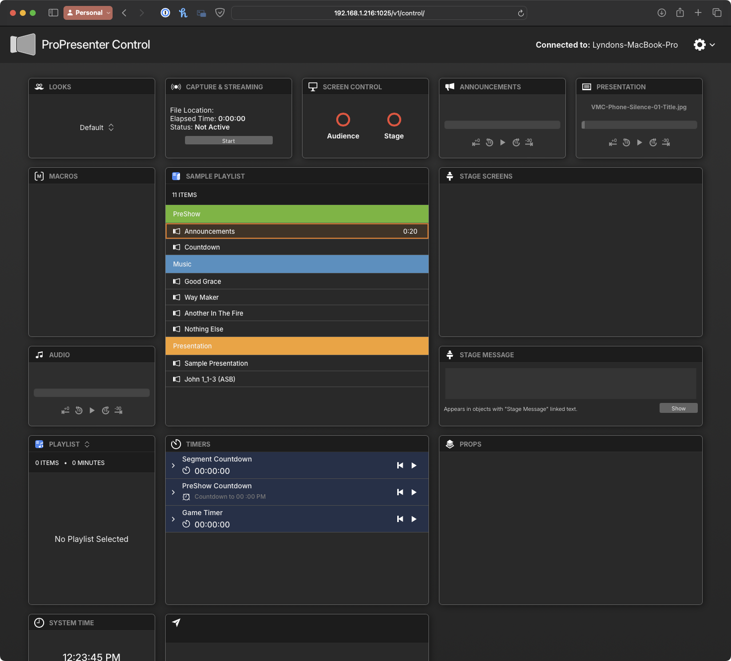 • Stream Deck Control: Provides a customizable, tactile interface for executing ProPresenter commands, enhancing the operator’s efficiency.